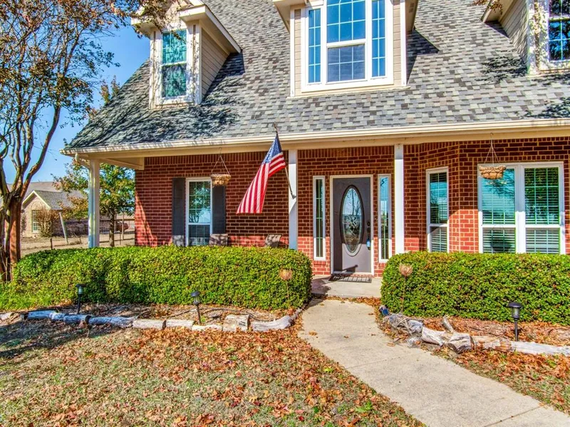 BEAUTIFUL FEDERAL STYLE HOME on 3 ACRES w-STABLE, TACK, CHICKEN COOP & LARGE STORAGE BUILDING+SEPARATELY FENCED PASTURE, CLOSE TO LAKE LAVON & MALLARD PARK BOAT RAMP! Long front porch, DORMERS, bright trim work & bay window all create EXQUISITE curb appeal! Upon entry, note the EXPANSIVE Great Room w-cathedral ceilings, 2-story brick FP & loft walkway! Your CLASSIC Kitchen offers DOUBLE OVENS, gas cooktop, bkfst bar & PREP ISLAND. Bkfst nook tucked in large bay window. SPLIT BED FLOORPLAN- Master DOWNSTAIRS w-dual sinks, JACUZZI TUB & WIC! Game Rm+2 guest beds & bath up. Energy efficient RADIANT BARRIER, 13-15 AC, attic insulation, tankless water heater & more. PEEK-A-BOO VIEW of lake from upper window!