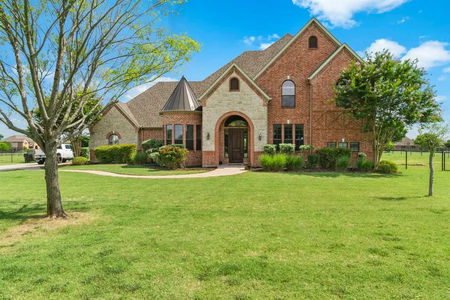 Custom Home on 1-acre lot. Dramatic 2 story foyer boasts hand scraped wood floors & wrought iron staircase. Formal dining features bay window & arched opening with art niches. Formal study has glass French doors for private home office. Family room has stone fireplace & lots of windows overlooking resort style backyard. Kitchen features custom cabinets with detailed edges & granite counter tops. Master suite features a large bay window in sitting area, spa inspired bath with deep soaking spa tub & large tile shower. The covered out door kitchen features WBFP, built-in grill & wine refrigerator, plus working sink. Backyard boasts a forest of planted trees both fruit and shade all on a drip line irrigation.