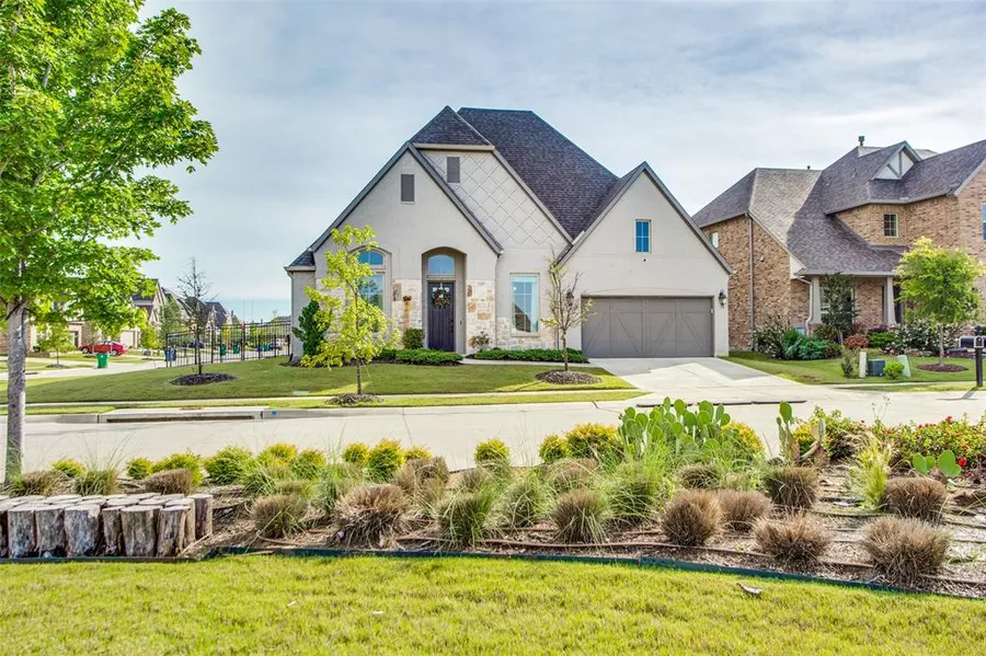 Incredible 1 story, open concept Britton built in sought after Master Community with Prosper ISD schools! The Gourmet Kitchen centers this spacious home with barely gray cabinets and sparkling white countertops and giant island in the middle, includes a butler's pantry as well as a walk in pantry. The grand living space and sliding wall of windows extends the entertaining area to the covered patio. Master Suite with vaulted ceilings and separate closets, vanities, tub and shower are secluded from other bedrooms. Media is off the grand living area, as well as the guest ensuite. Two secondary bedrooms share a full bathroom. Across the street is another amazing feature ~ spectacular neighborhood fun at this park!