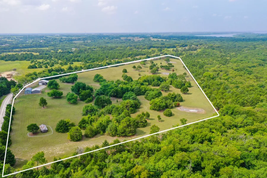 Maybe the most beautiful piece of real estate in Collin County! If your looking for Heaven on Earth you've found it! This 14+ acre paradise has multiple build sites with breathtaking views of Corp of Engineer wilderness. Stay in the cozy barndominium with all the comforts of home while you build your dream home. Tremendous road frontage also makes this paradise an incredible investment opportunity! Watch the deer and wildlife from your back porch or take leisurly strolls through the trails in the woods. Hundreds of acres of wilderness of Corp of Engineer wilderness insures future privacy. Raise chickens, livestock, and a garden while the pets and family have room to roam!