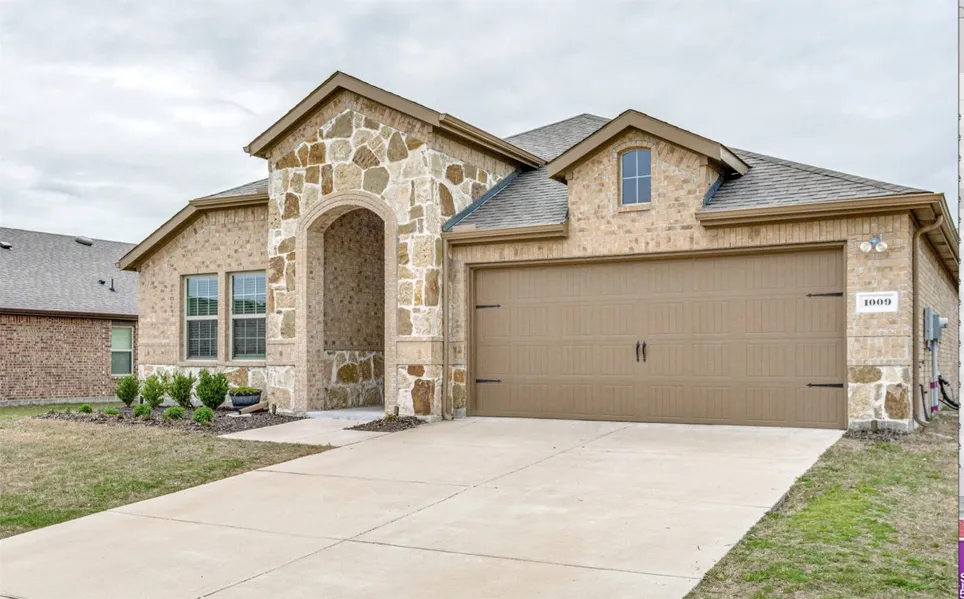 This stunning and highly desirable 1 story home offers 3 large Bedrooms & 2 full baths with an open floor plan which is perfect for entertaining & family gatherings. Spacious kitchen with stainless steel appliances, granite countertops, island and much more. Custom wall treatments with wainscoting is featured in the primary and guest bedroom as well as a custom fireplace in the family room for that perfect for those chilly North Texas evenings. The oversized lot offers more privacy & space than others and is the largest lot available on the market right now in this community! Sizable 2 Car Garage finished with a beautiful epoxy floor. Home is just 2 quick blocks away from the new community pool that is currently being built.