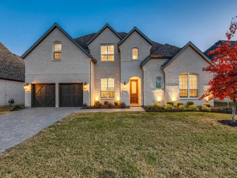 Why wait to build? This upgraded 2022 Highland home is ready now and will fulfill your upscale living dreams with no detail overlooked. This property showcases a contemporary white brick exterior and a 3-car garage. Step inside and be captivated by the wood flooring and soaring ceilings imparting an elegant feel. The spacious living room, game room, and primary bedroom inspire next level comfort. A downstairs media room serves as your entertainment hub. The gourmet kitchen boasts an abundance of custom cabinetry complemented by a wine bar & butler's pantry. Experience distinctiveness with the custom features woven all through this home & let the luxury soak in. Mustang Lakes is a nationally awarded, master planned community w 18 miles of trails, 20 acre park with lake, resort style pool, fitness center & tennis courts. Front yard maintenance is incl with HOA dues. Highly rated Prosper ISD. Walking distance to community elementary.
