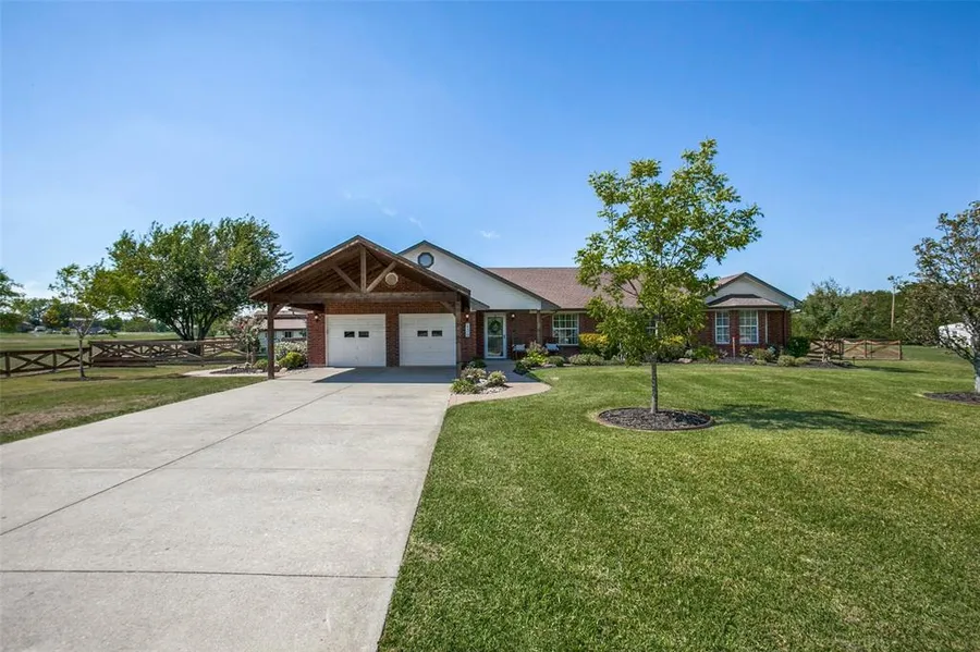 OPPORTUNITY AWAITS!BUYER BACKED OUT AT NO FAULT OF THE HOUSE! Approx 1.66 acres & only 15 minutes from McKinney incredible 1 story farm house has it all!Cedar carport at the front of the home for added parking.Outdoor amenities include a huge fenced in yard w a sprinkler,outdoor storage spaces,stone pavers,& separate garden w raised beds.Wood laminate floors through living,dining,&hallway & are perfect for country living.Window panes replaced w Low E glass.Kitchen has SS app,updated induction range,granite ,breakfast bar,lots of storage cabinets.Living rm w recessed lights & wd burning fp.Primary at the back of the home plus 2 secondary bedrooms are very spacious & have lots of natural light.Bonus room not included in sq. ft. makes a fabulous study and brings the total Sf that could be used to 2236.Screened in patio w swing.Land behind fenced area has some fruit trees.Roof 2018.Ecobee th...