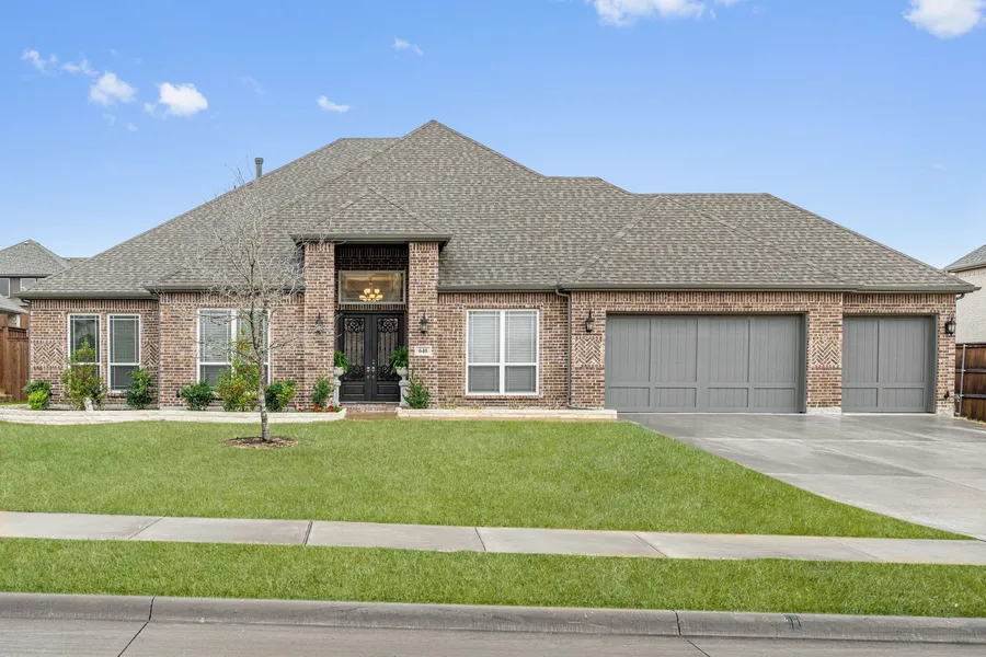 Situated on a premium .34 acre lot in the heart of Prosper, this beautiful multi-generational home is only minutes from incredible Prosper ISD schools. Custom built & NORTH facing, this one story welcomes you with gorgeous stone landscaping & a spacious 3 car garage.Enter through the double front doors to find rich hardwood flooring & a secondary living space including a kitchen, master bedroom & bathroom.The secondary suite has all that is needed for independent living & can be closed off from the rest of the home.The open living room & kitchen has tall vaulted ceilings, quartz countertops, double ovens & a butler's pantry.Adjacent is a study that could also be used as a formal dining room.The other 3 secondary bedrooms are separated with a pocket door & include 2 bathrooms.The master suite is privately located near the back.The backyard includes privacy with a separate area fenced off ...