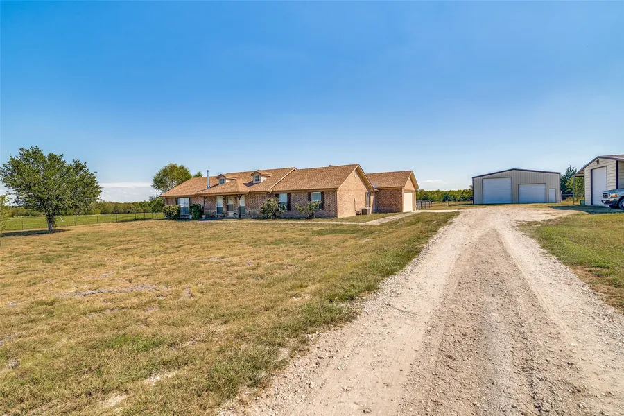 32 Acres in Farmersville. Custom 3-2 ranch home featuring a spacious split bedroom floor plan. Living open to dining, kitchen equipped with stainless appliances and abundant cabinet and counter space. Secondary living ideal for a gameroom, workout, or office. Oversized master suite with dual vanities, water closet and walk-ins. Natural light throughout with refreshing panoramic views right from your kitchen or dining windows. Stained concrete with custom molding. Large covered patio off dining that is extended and connected to the garage. No climb fencing with side and rear gates for added convenience. Two generous metal workshops 20x30 and 40x50 both with utilities. Small shop with two overhang carports. Large shop features pull-through, spray foam insulation, automatic doors and much more. Property is cross fenced, perfect for separating livestock, etc. See property feature sheet for extensive list of property highlights. Relax or entertain with ease at Dry Creek Ranch.