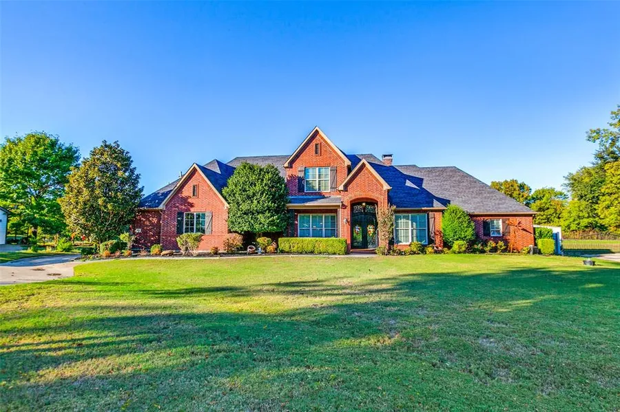 Experience the serenity of country living on a rare 1-acre lot nestled in the city, on a cul-de-sac street with the convenience of Frisco schools. This exquisite 3-bedroom, 4-bath, 3 car garage residence offers a blend of elegance and functionality. Enter through a striking iron and glass door into a spacious living room featuring wood flooring, a built-in entertainment center and gas fireplace. The formal dining room is adorned with a built-in hutch, while the expansive kitchen boasts wood flooring, double ovens, a 5-burner gas cooktop, a warming drawer and ample cabinetry. The study features double French doors and a wall of built ins including computer niches, and shelving for both decor and storage. Plantation shutters adorn the windows on the front of the home. The primary suite, located on the main floor, features a double-sided fireplace, dual vanities, a jetted tub, separate shower, dual closets, and a mirrored exercise room. Enjoy a media room, study with dual built-in desks, and a large utility room with a sink. Upstairs includes a massive sized game room and 2 bedrooms with ensuite baths. Outdoor living shines with a covered patio, swimming pool, firepit, and storage shed, and is fully fenced for privacy. Contact the listing agent today to schedule your private tour.
