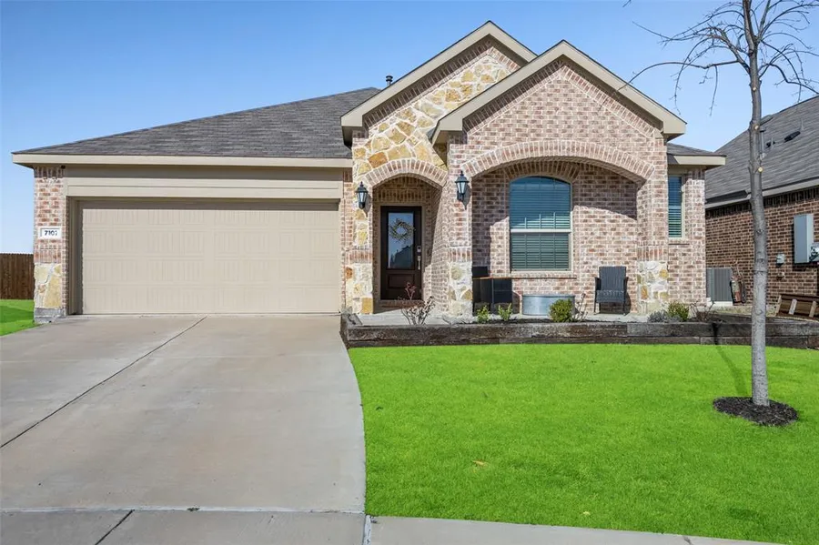 Welcome home! Single story home in McKinney ISD offers both a covered front porch and covered back patio, perfect for taking advantage of that Texas sun and shade. Open floorplan highlights the kitchen, with an island, breakfast bar, stainless steel appliances, and the cutest grass wall~barn door treatment for the pantry! Cozy living room has a view out to the backyard, with big windows providing plenty of natural light. Primary bath features a large walk in shower and dual sinks. Secondary bath has a tub, so you can take a relaxing soak when you want. Rich color palette of whites, grays, and black will let your decor blend in effortlessly. Conveniently located near major roads.