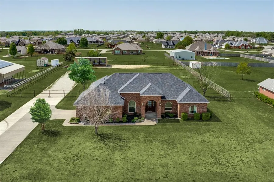 Price Reduced!!! **Low 1.45% Tax Rate! Outside city limits** Charming Acreage Living in Van Alstyne! Discover a beautiful brick home nestled on a sprawling 1-acre lot with the added benefit of no HOA restrictions. This property features 4 bedrooms, 2 tastefully renovated bathrooms, and a convenient 2-car garage plus extra parking space. Inside, enjoy an attractive kitchen with granite countertops, an updated backsplash, a cozy breakfast nook, and a dining room with updated light fixtures. The living room boasts a tray ceiling, wood-look flooring, and an updated sliding glass door that opens to a large covered patio. The spacious primary suite offers an updated bathroom with a renovated shower, granite countertops, new fixtures, dual walk-in closets, and fresh paint. Secondary bedrooms with 2025 carpeting are thoughtfully separated from the primary bedroom. Outdoor enthusiasts will love the wide-open space for parking an RV, boat, or trailer, as well as a versatile storage building with car-port and stable areaperfect for chickens or a horse. Full pipe fencing and water hydrants in the backyard for your animals and projects plus a productive native pecan tree. With new windows in 2023, HVAC and water heater in 2024, this home is ready for you. Over $175k invested in recent home and property enhancements!