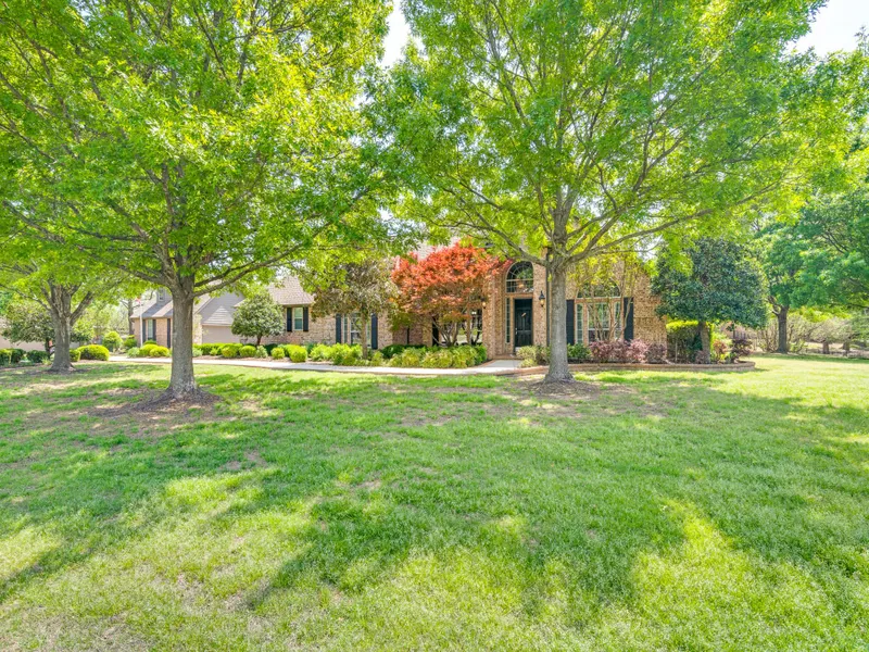 Exquisite one-story custom home nestled on a lush, treed one-acre lot in the prestigious Estates of Camden. Boasting impeccable curb appeal, this expansive residence offers approximately 3,000 square feet of luxurious living space with four bedrooms, three bathrooms, and a rare five-car garage setup that caters to both function and enthusiasts' dreams. Step inside to find gleaming real hardwood floors that stretch throughout the main living areas, complimented by meticulous custom millwork and built-ins that add character and utility. The thoughtful split bedroom floorplan ensures privacy, while the oversized study provides a space for productivity or retreat. Multiple living and dining rooms offer versatile spaces for everything from formal entertaining to casual gatherings. The heart of the home is a gourmet kitchen, it opens seamlessly to a comfortable family room, creating an ideal flow for both intimate evenings and larger celebrations. Step outside to an impressive, expansive covered patio finished with beautiful flagstone. Its an inviting space for outdoor living, dining, and relaxation amidst the beautifully landscaped surroundings. Car enthusiasts and hobbyists will appreciate the three-car attached garage, as well as a separate two-car detached garage that could double as a workshop. This structure includes a staircase leading to a walk-up storage area, providing endless possibilities for additional storage, a studio, or expansion. Dont miss this extraordinary home that combines luxury and comfort in one of Lucas's most sought-after neighborhoods. Contact the listing agent today to schedule your exclusive showing and experience all that this remarkable property has to offer.