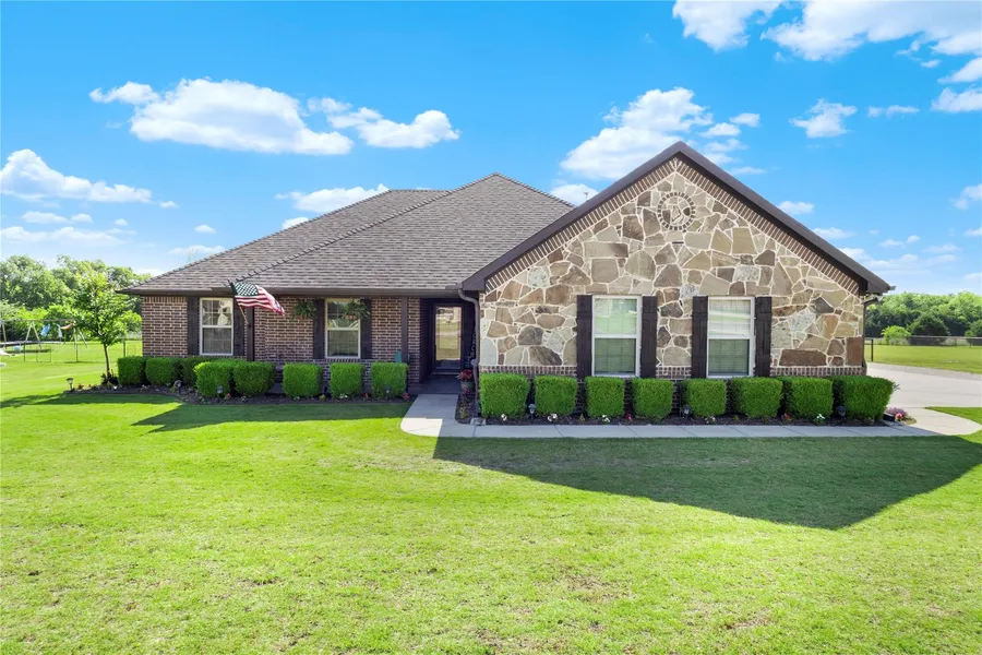 This beautiful 3-bedroom, 2-bath home sits on a spacious 1-acre lot in a quiet country subdivision with no restrictions. Built in 2015 with a roof just 2 years old, it features a cozy stone, wood-burning fireplace, stained concrete floors, and plush carpet in the bedrooms. The kitchen is designed for entertaining with granite countertops, a double oven, and an open layout that flows into the living room. You’ll also enjoy both a formal dining room and a breakfast nook. The oversized master suite includes room for home office, walk in closet, double vanities, a walk-in shower, and a separate soaking tub. Outside, the property is fenced and ready for animals, complete with a 24x30 insulated concrete shop, 24x24 concrete carport, 24x24 barn, and a 24x24 turnout. A rare find that combines modern living with country charm!