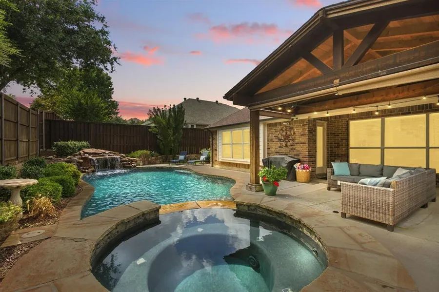 MOTIVATED SELLER!! Nestled in the prestigious Cedar Ridge Estates, this stunning North facing, 4-bedroom home with a dedicated study offers a thoughtfully designed floor plan adorned with high-end designer touches throughout. From the moment you enter the elegant rotunda foyer, you'll be captivated by the luxurious detailsrich wood flooring, coffered ceilings, graceful archways, and artful inset walls. The gourmet kitchen is a chefs dream, featuring stainless steel appliances, an oversized granite island, and extended countertops that flow seamlessly into the breakfast roomperfect for casual meals or entertaining guests. This open-concept layout also boasts 2 spacious downstair bedrooms with a shared hallway bath, accessorized with beautiful built-ins and natural light, identical to the office (could be 5th bed), Multiple spacious living areas, a game room, and a media room that includes a complete theater package that includes leather electric reclining system for the most amazing movie nights! Step outside to your own private oasis: a covered patio equipped with a misting system and pull-down shades, all overlooking a sparkling saltwater pool and spa complete with a tranquil waterfall and hidden grotto. Imagine chasing fireflies and making smores around the firepit with friends! Not to mention the oversized 3-car garage provides ample storage and functionality. No MUD or PID Tax, Low HOA and zoned for Walnut Grove High School! This home is the perfect blend of sophistication, comfort, and entertainment -- Call today to schedule a tour before it's gone!