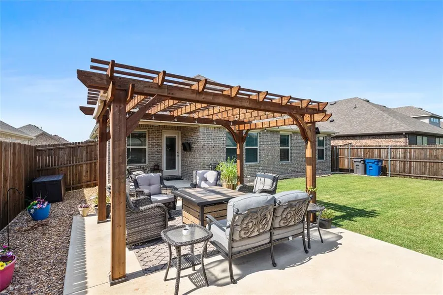 Step outside and enjoy not one, but two outdoor living areas! Relax under the covered patio or gather with guests beneath the separate pergola set on a concrete slab—ideal for grilling, lounging, or enjoying Texas evenings.