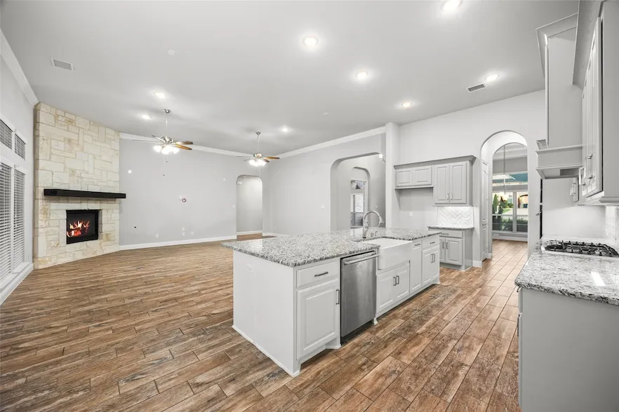 Welcome to the best of country living just minutes from the city. Nestled on 1.19 acres in sought-after Parker Ranch Estates and zoned to top-rated Allen ISD, this south facing move-in ready one-story offers the space, privacy, and modern comfort you've been searching for. With no west side neighbor, you ll enjoy unobstructed views of breathtaking Texas sunsets every evening. Inside, enjoy 4 spacious bedrooms, 3.5 baths, a private office, game room, and a fully outfitted media room designed for everyday comfort and next-level entertaining. The media room includes a 136inch screen, Epson projector, Denon receiver, and 7.1 surround system with two pass-through speakers built behind the screen and 6 in-wall speakers. Prewired whole-home audio extends to the kitchen, living room, primary suite and bath, and outdoor patio ready for your soundtrack of choice. The open-concept living space is anchored by luxurious wood-look tile and a chef s kitchen featuring an 11-foot island, granite countertops, stainless steel appliances, and generous cabinetry perfect for entertaining or everyday family life. The primary suite is a true retreat, offering a spa ensuite bath including a walk thru double shower and oversized closet, while secondary bedrooms ready for kids, grandkids, family guest. Step outside to your extended covered patio with fireplace, dual pergolas, and endless space for future pool dreams or serene stargazing. This smart home is packed with upgrades: CAT 6 wiring, a hardwired security system with cameras plus 5 wireless cameras, smart thermostats, garage doors, locks, and a 3-car garage prewired for a 220V EV charger. Energy-efficient features include a tankless gas water heater and high-efficiency HVAC. If you are craving space and sunsets, this Parker gem delivers. The sunsets are free. The lifestyle is priceless.