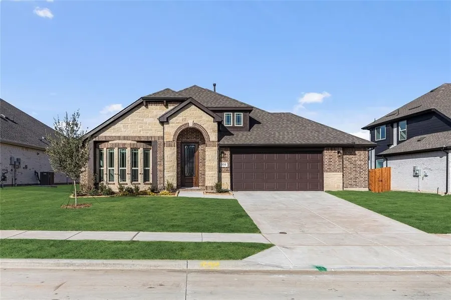 NEW! NEVER LIVED IN. Ready to Close! Striking from the curb and equally impressive inside, this 2.5-car garage Hawthorne II by Bloomfield blends craftsmanship and comfort with smart, stylish upgrades throughout. The home greets with a brick and stone façade, brick front porch, and a custom 8' Warwick front door, leading into an octagonal foyer that sets a welcoming tone. At the front of the home, a glass French door Study sits across from an open Formal Dining area, creating a flexible space for work or entertaining. The heart of the home features a light-filled Family Room and Breakfast Nook, both with raised ceilings for an added sense of volume. Anchoring the living space is a Stone-to-Ceiling Fireplace that adds warmth and visual interest. The Deluxe Kitchen offers upgraded style and utility with Quartz countertops, glazed upper cabinets, pot and pan drawers, a farmhouse sink, under-cabinet lighting, and a large island with cabinet island facing. A walk-in pantry and stainless steel gas appliances, including a built-in oven and drop-in cooktop, complete the space. Upstairs includes a fourth bedroom and third bath next to the Game Room, while downstairs, the Primary Suite and 2 additional bedrooms are thoughtfully placed. The bathrooms include L5 quartz and decorative backsplashes, with utility upgrades like cabinet uppers. Outside, this home is ready to enjoy with a gas drop at the back patio, full gutters, irrigation, and a stained fence. Finishing touches include disc lights at the Study, hallway, and garage, mini recessed lights at the buffet, and a tech center tucked neatly between rooms. Every inch of this home has been elevated for comfort, style, and function—visit Bloomfield at West Crossing to experience it firsthand.