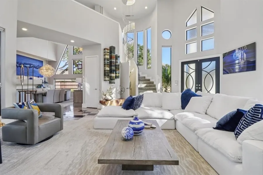 Welcome to 5801 Dove Creek, where modern luxury meets timeless sophistication! A striking contemporary estate that exemplifies architectural artistry and luxury living. This one-of-a-kind residence showcases dramatic design with soaring ceilings, geometric window lines, and an abundance of natural light that flows through every space. Step inside to discover a grand living area with floor-to-ceiling windows, an elegant fireplace, and designer finishes throughout. The home is adorned with marble and stone flooring, custom lighting installations, and high-end fixtures that create a gallery-like ambiance. Perfect for entertaining, the open-concept layout connects seamlessly to the chef’s kitchen, formal and casual living areas, and a stunning pool view. Every detail has been thoughtfully curated, from the statement staircase to the curated art niches and built-ins. Retreat to the luxurious ...