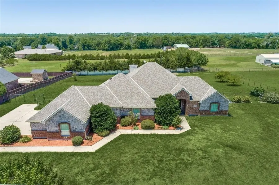 The only cookie cutter you'll find here is in the kitchen drawer! Recently refreshed Estate on 1 acre with 4 bedrooms, 3 full bathrooms, an extra seating or play room AND an office. Split bedroom floorpans for privacy, secondary bedrooms at rear of the home for safety. Oversized master bedroom with remodeled bathroom! Handpicked materials, split vanity so his area is independent of hers, and a freestanding tub! One of the 4 bedrooms has an ensuite bathroom and the location of the bedroom could be utilized as a mother-in-law suite. The second bathroom is jack n jill style and shared with the other two bedrooms. The kitchen overlooks the living room and dining room so nothing is missed during get togethers and holidays. Beautiful white cabinets, granite countertops and HUGE pantry with wall of windows overlooking the backyard and pool. The fireplace has been updated and painted to be a mainstay of the living space. That's just inside. Outside features the gathering spot where all gather under string lights on the patio and splashing in the saltwater pool! Check out the aerial photos, you truly only have 1 nearby neighbor on this property. Mckinney ISD! EV charging plug in the 3 car garage plus room to extend the driveway to a future built shop. Just a few turns from the main road makes Mckinney a 10 minute drive. Plano is a 30 minute drive and Frisco is about 40 minutes. Start the new year in a new home!