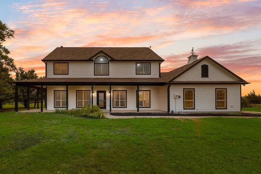 Private Country Retreat on 3.8 Acres Public Open House Saturday 11-22 from 11:00 am to 1:00 pm. FIRST MONTH ONLY SELLER INCENTIVES include: a transferable whole home warranty and a 2-1 Interest Rate buy down with qualifying offers. Set on 3.8 acres, this residence features 5 spacious bedrooms and 3 full bathrooms. The primary bedroom and bathroom are massive! Beautiful hardwoods throughout will wow you! The fully updated kitchen with gas range position you as the King (Or Queen) of the the kitchen. You will appreciate the exceptional flexibility of functionality because the bonus den can be used as playroom, second living room or an additional bedroom. This would allow you to utilize one of the five bedrooms as a home-office. Please note two unique bonus features: a seamlessly integrated storm shelter with steel door inside the downstairs bath for peace of mind through stormy seasons and a central vacuum system for easy and powerful housekeeping. Recent modernizations include: New cedar posts on the expansive wrap around porch, new led lighting, new siding and paint on exterior, new granite countertops, fresh paint throughout the interior, a beautiful tile facade on the fireplace, resurfaced hard-woods and the driveway has been fully regraveled and leveled. The land offers plenty of space for future upgrades which could include a pool, garden, workshop, and a pasture for horses. As a bonus, the mesquite trees provide privacy from the neighbors. Currently, the full acreage is partially fenced and the backyard is fully fenced. If you're seeking space, privacy, and a taste of country life without sacrificing proximity to city amenities, this home delivers. Experience the charm and tranquility of country living, just moments from the shopping, dining, and top-rated schools McKinney has to offer. Don t miss out on this peaceful country estate. Book a private showing today at 972-345-1867. (Call or Text)