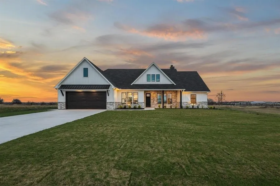 Welcome to this impeccable new construction home, a true testament to high-quality craftsmanship, located in Collin County & sought-after Blue Ridge ISD. Fall in love with this 1+ acre corner lot and the striking curb appeal of this contemporary craftsman, offering both space and privacy, with plenty of room to add a shop or a pool. The crisp, stark white board and batten siding and elegant brick exterior create a captivating contrast, accented by sophisticated rich black lighting & dramatic overhangs. This home is a true showstopper! Designed for a comfortable lifestyle, this unforgettable home boasts high-quality finishes and an open floor plan that is flooded with natural light. An airy & open ambiance is created by the expansive cathedral ceiling complemented by handsome wood beams. Enjoy the warmth and ambiance of the prominent fireplace (wood burning with propane starter). The heart of the home, this chef's kitchen is an entertainer's dream. Enjoy abundant storage with floor-to-ceiling soft close cabinetry, and a stunning, high-contrast island that serves as the perfect gathering spot. Kitchen flows seamlessly into the casual dining area. The backsplash is a work of art adding a bold contrast to the countertops. Primary BR showcases an incredible ensuite with dual vanities, soaking tub & a walk in shower that is magazine worthy. The home includes two additional bedrooms, another 1.5 bathrooms, versatile flex-office space, & large laundry room designed with added safe-space features in mind. Step outside to an expansive patio—perfect for entertaining or simply relaxing under those bright, starlit Texas nights. The home is generator-ready with electrical already installed & features a three-car tandem garage. This quality home is filled with desirable features & scenic views you’ll want to experience firsthand. Its exceptional location offers the perfect blend of country charm & everyday convenience.