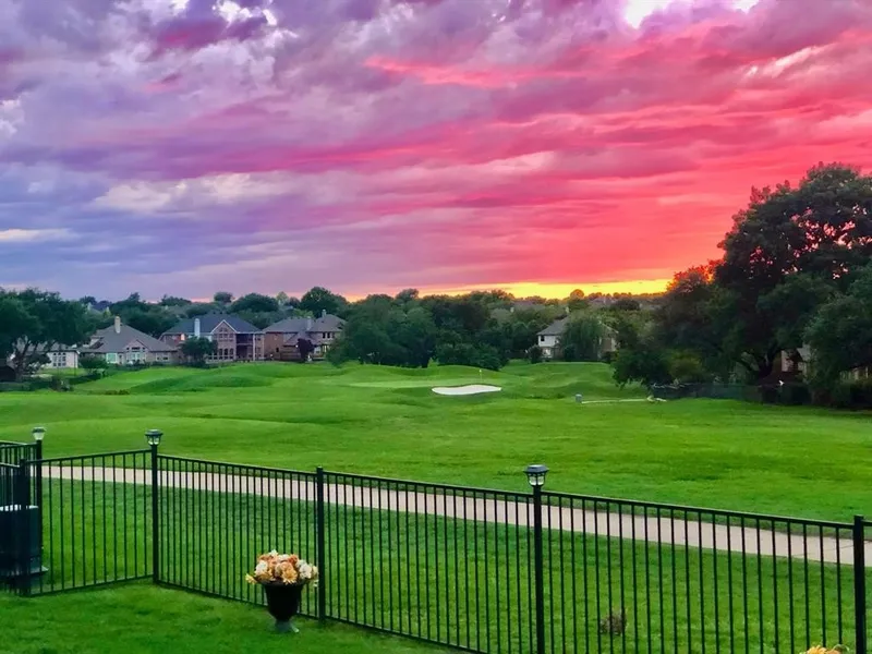 SPECTACULAR Golf Course View overlooking the 17th hole par-3 tee box. Whether viewing from the 2nd story covered balcony, primary bedroom, living room, office, back patio, or 2025 hot tub, this tranquil setting has a way of soothing the soul! The interior of this 4 bedroom, 3 bathroom home is also a welcome retreat with its spacious rooms, fresh carpet & Alabaster paint, & light, bright interior! Living room & office picture windows provide prime seating for viewing the course and for watching golf carts transporting golfers to the next tee box. Perfect for entertaining, the living room enjoys a seamless transition to the kitchen where a double island provides ample room for guests to hang out and for the chef to prepare the meal! A wall of 42 inch cabinets, plenty of countertop space, plus a built-in desk! New oven, microwave, & primary bathroom shower glass just installed! Downstairs bedroom & full bathroom for guests or elderly parents. Upstairs game room, primary suite, & additional 2 bedrooms with Jack & Jill bathroom. Walk-in attic space for great storage! 2024 HVAC unit. 2023 Roof. Zoned for Frisco ISD. Ridgeview Ranch amenities include an 18-hole golf course, club house, pool, fitness center, park, playground, pickleball court, & tennis courts!