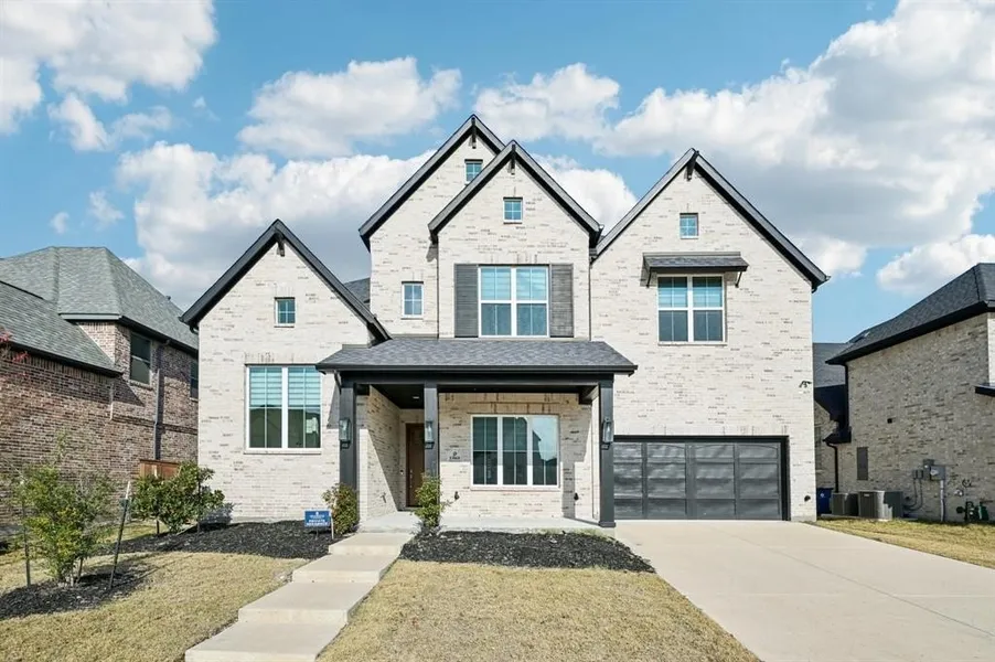 Situated in the prestigious Estates at Shaddock Park and served by Frisco ISD, this refined 5-bedroom, 5.5-bath residence with a 3-car garage offers an exceptional blend of architectural presence and upscale finishes. The expansive, light-filled interior features soaring ceilings, a seamless open-concept design, and real red oak hardwood flooring throughout. The chef’s kitchen is a statement of modern elegance, showcasing a dramatic waterfall island, stainless steel appliances, gas cooktop with make-up air system, custom cabinetry accented with gold hardware, and under-cabinet lighting, all flowing effortlessly into the main living area. Anchored by a smooth Madrid cast stone fireplace with shiplap surround, the living room opens through an impressive 16-foot sliding glass door to the outdoor living space. The extended covered patio is designed for elevated entertaining, complete with a 42-inch wood-burning fireplace, gas stub-out, and generous gathering space. The private primary suite serves as a tranquil retreat, featuring a spa-inspired bath with refined finishes. A guest suite on the main level offers flexibility for multi-generational living. Additional highlights include a dedicated office, expansive game and media rooms, en-suite baths for all upstairs bedrooms, a well-appointed utility room with sink and cabinetry, and a garage enhanced with two EV charger outlets and additional storage. Residents enjoy access to resort-style community amenities including walking trails, clubhouse, pool, fitness center, dog park, playground, pavilion, and picnic areas.