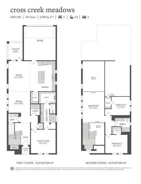 NORMANDY HOMES ADELINE floor plan. This charming three-bedroom, two-and-a-half bath home offers an affordable yet high-quality living experience, showcasing exceptional craftsmanship throughout. The well-designed layout includes a roomy family room with high ceilings, a spacious kitchen, and a game room for added versatility. This home has many luxury features included! The exterior elevation is both adorable and inviting, setting the tone for the thoughtfully constructed interior. With attention to detail, each room is designed for comfort and function, from the tranquil owner's suite downstairs to the well-sized additional bedrooms. Built with quality materials and smart design, this home delivers both style and durability at a great value, making it the perfect choice for those seeking an affordable home without compromising on craftsmanship. Come see for yourself why this is one of ...