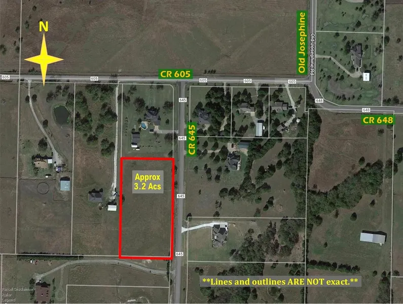 Research Parcel InformationFrom Hwy 380 (Audie Murphy Pkwy) in Farmersville, go South Orange Ave, turn Left on Old Josephine Rd, Right on CR 605, Left on CR 645. Property will be on the right-hand side, right past the first house.