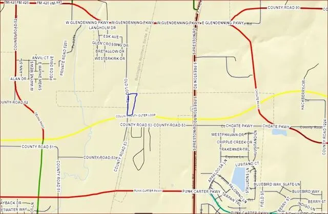 Industrial Property between Preston and Tollway. This 3.55 ac sits Along railroad and will have frontage on The Outer Loop and Old Log Trail. Southern part of land has already been deeded.