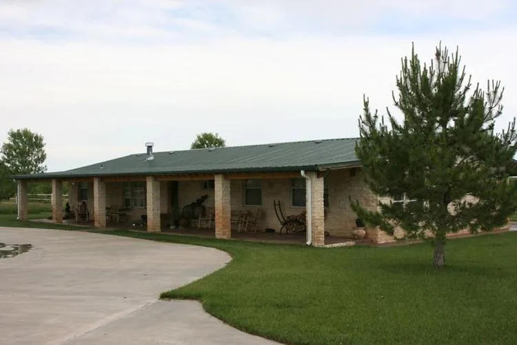 IMPROVEMENTS: Double wide mobile home with Austin stone exterior, covered concrete porches, 4 bedroom, 2 1/2 bath, 2 living areas, 2 fireplaces, 2400+/- sq. ft. Nice 30x50 metal barn with attached shed, also has 3/4 bath. Perimeter fencing - 3 sides excellent, north side is "good" but not new. 60x60 cattle pens, covered working area.