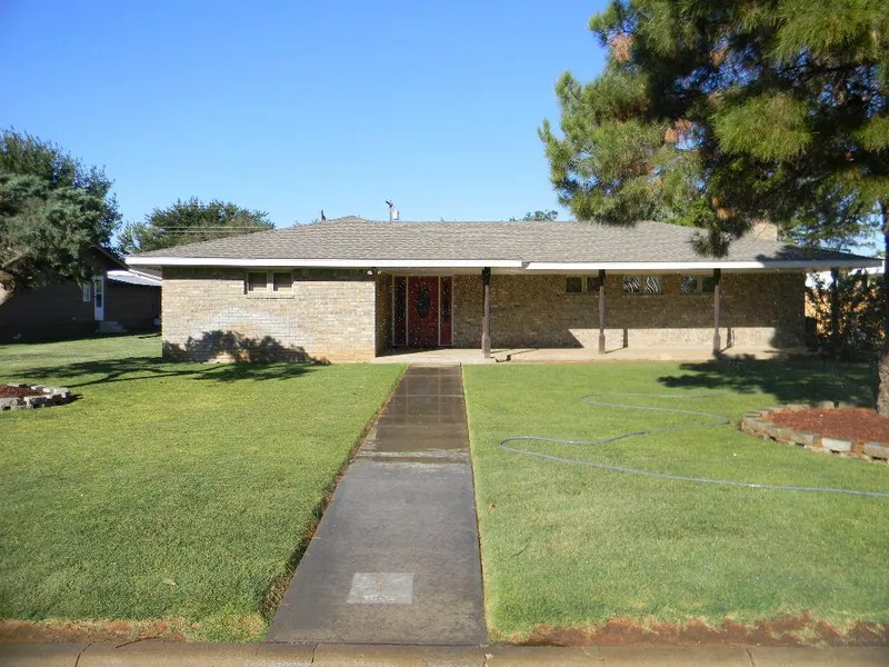 Backup Offers are being accepted. Situated in spectacular neighborhood one block south of Wellington Elementary, this brick home constructed in 1994 features a cozy gas fireplace and custom built ins. The 1,372 square foot open concept floor plan has two bedrooms plus a tornado safe room and spacious closet space. Vaulted tray ceilings in master bedroom and living room plus ceramic tile flooring with new low pile carpet and neutral paint colors complement this move-in ready property. Granite look Formica is easy care in the kitchen, two baths and large laundry room. With handicap accessible design, this beautiful home has easy access central heat and air, newer water heater and energy efficient windows. Large front porch surrounded by mature trees has attractive curb appeal. Entertain family and friends in large courtyard area with new privacy fence. New two car garage with beautiful re...