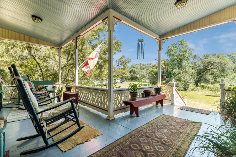 If you are looking for a quiet country getaway with character, this is it. Lovingly restored 1860s farmhouse nestled among beautiful large oak trees on 4.34 acres South of Columbus. Home welcomes you with wonderful front porch perfect for rocking chairs. Antique front door from New Orleans still uses skeleton key. Wood floors throughout, high ceilings & transom windows with great views. Eat-in kitchen left of the foyer leads into living room w/wood ceilings & 3 walls-of-windows looking out over the property. Large bedroom right of the foyer leads into the bathroom w/claw-foot tub. Bathroom also has door that leads out to screened porch on east side of home to access the Utility Room. Private guest room & foyer both have access to screened porch. Majestic oak trees provide plenty of shade & privacy. Property is surrounded by large ranches that lend to the property's privacy. You have the ...