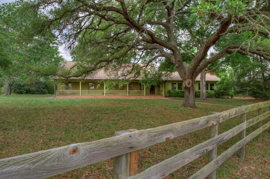This outstanding 1900's farm house, Clarion Ranch, offers 4 bedrooms, 3 baths and has been extended and renovated in 1969 and 1986. The home is located 2 miles from the city of New Ulm (on a paved road) and is nestled on 179 acres boasting rolling terrain, heavily wooded areas with ravines and lush natural landscape that makes a great habitat for wildlife, including many deer. The property also offers a barn with 3 pens, tack room and hay storage, another bar with livestock feeders and a 3rd barn with concrete floor - perfect for heavy equipment. There are also corrals, cattle handling facilities with chutes and 3 water troughs. The property grounds also offer 4 tanks ranging from 1/4 acre to 1 acre, improved pastures, native grasses, a hay meadow and a pasture near the home could be used as an air strip for a private airplane. The home boast gorgeous views and is surrounded by a substantial wood fence. Mature live oak trees provide plenty of shade. The home has a metal roof and a charming and expansive covered front porch with a vintage front door with inset bebeled glass. The interior offers spacious, open areas including a living room with beamed ceiling and wood burning fireplace. You'll love the large bedrooms and more. The huge gathering room includes handsome wood flooring and rough hewn ceiling beams. Wall of windows in this room bring nature and natural lighting indoors. A stately brick wood burning fireplace with heater is flanked by custom built-ins. Love wood paneled walls add an irrestibly country charm to this space!