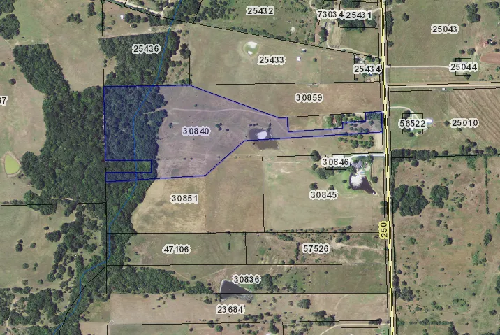 Land not too far from town off of County Road 250 close to Weimar. This tract is open and wooded in back with a creek! A shared pond/tank with the neighbor is also on site.