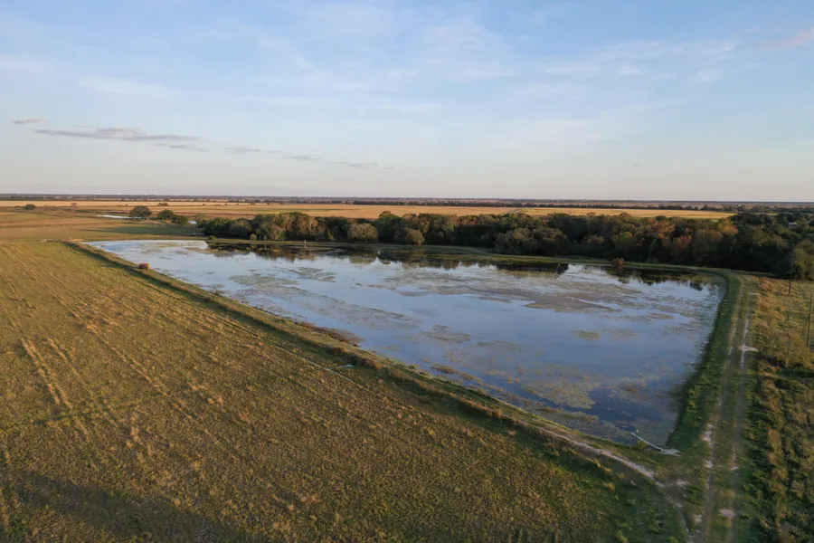 Approximately 185.74 acres is offered featuring a 10-acre duck pond, a tree-lined seasonal creek and income-producing farmland. Ideal for those that enjoy fishing, duck and goose hunting and deer hunting. A recently constructed building features about 2,000 SFT, and is divided between a living area and a shop. It sleeps 10, has a full kitchen, a full bathroom and a living room. An existing corral includes several steel panels and a large holding pen can be utilized for cattle ranching and the original barn provides a storage area. Cross-fencing enables simultaneous cattle ranching and rice farming. The location is easy to get to, and is located about 65-70 minutes west of Katy and Sugar Land respectively, and less than half an hour from El Campo and Eagle Lake. Unique in that the area with thick trees makes for great deer hunting, the 10-acre pond is ideal for duck hunting, and the farmland can also be used for hunting and producing income.