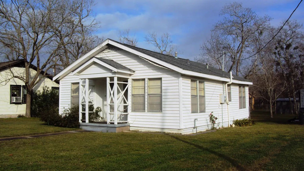 The 802+/- sqft (per CCAD) house contains a front porch, 2 bedrooms, 1 bathroom, living area, kitchen area & enclosed back porch currently used for a utility room/storage. Built in 1935, the house contains a composition roof, exterior vinyl siding & Central A/H.