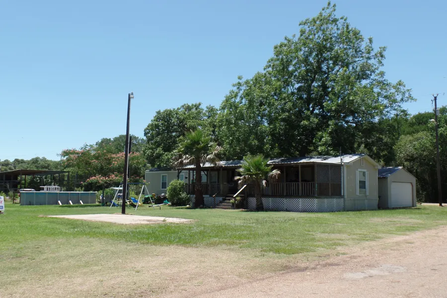 Quiet Country Living.... Even though this property is off the beaten path, it still has easy access to surrounding towns. It has large oaks, pecan, and other varieties of trees, giving ample shade through out the almost 2 acres. The mobile home has a nice open concept, a large covered front porch, and a 2 garage with 2 doors on opposite ends making for easy accessibility. There is also a concrete pad with electricity close by for an RV. There is a renter, so 24 hour notice is requested.