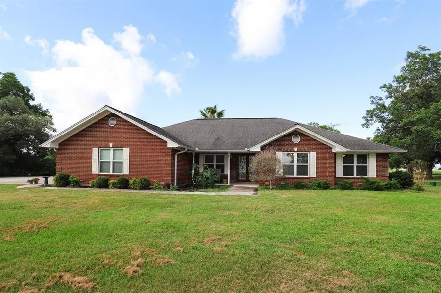 This beautiful country home is only upstaged by the magnificent centuries-old oak and pecan trees interspersed throughout these manicured 5.1 acres. Located just 2 miles SW of Weimar & an hour from Katy, this spacious, energy efficient home features large open kitchen/dining/living area, top-of-the-line carpet in bedrooms & living area, high-rated water filtering system, sprinkler system & security system. Kitchen w/granite, custom cabinetry, walk-in pantry. Large windows throughout home w/custom blinds. Entire back of home is windows. Master bedroom has access to back patio & has en suite w/walk-in shower & Jacuzzi tub. Original owners closed in 2-car garage & created an entertainment room... would be easy to do that again. From garage to kitchen is mudroom with a sink, as well as the washer/dryer. There is a 24' x 50' shop under the trees, w/2 large garage doors and walk-in door on one...