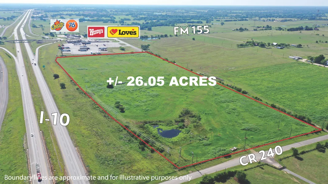 Research Parcel InformationTo access inside the property, take north I-10 feeder road going westbound under the overpass to get onto CR 240, property entrance on the left. Access by appointment only. Can also see property from Love's concrete driveway off FM 155 S.