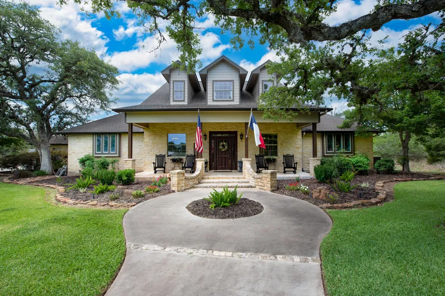 Country living awaits you in this exquisite 3750+ sq. ft. 1-story home located on 1.5 manicured acres. This stunning home offers a bright and spacious living room that flows into the dining area and kitchen. The kitchen features convection double ovens, breakfast bar, granite counter tops and travertine flooring. There are four spacious bedrooms including a primary suite complex. 3.5 baths, large game room with wet bar, work area and utility room. The beautiful backyard has a huge covered patio, outdoor kitchen, stone fireplace, and inviting swimming pool for gatherings and entertaining. A barn offers plenty of room for projects and equipment. This home offers the perfect setting to enjoy with family and friends. Come enjoy the best of country living just minutes away from restaurants and shopping.