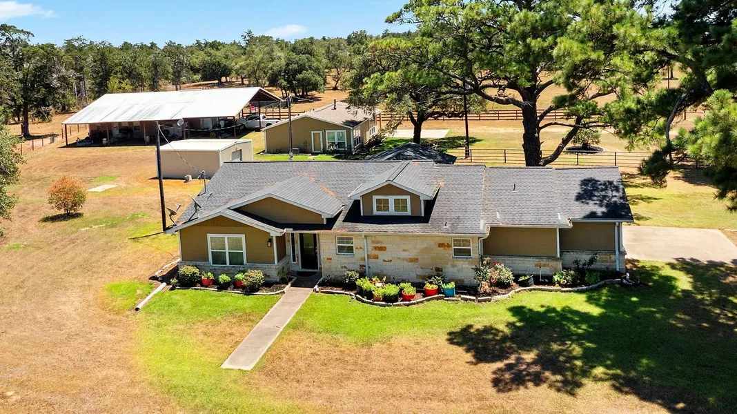 Welcome to this exceptional Ranch, conveniently situated at 1242 Piney Woods Road, Alleyton,TX. This remarkable property on this dead end road offers a main house and a guest house, both fully remodeled in 2020/2021, plus an apartment/barndo all sitting on a sprawling 87.679 acres of prime land. This MUST BE SEEN to be fully appreciated! Step inside the 4 bedrooms, 3 bath main house and discover an inviting open concept floorplan spanning 2500 square feet. The spacious living and dining rooms provide ample space for relaxation and entertainment. The gourmet island kitchen features exquisite quartz countertops, a breakfast bar, plenty of cabinets, a built-in wine rack, and a suite of top-of-the-line stainless steel appliances. The expansive primary bedroom is flooded with natural light and features a cozy sitting area. The primary bath is a true retreat with quartz countertops, separate sinks, an oversized freestanding shower and a luxurious corner bathtub. Wood-like tile flooring throughout. Additionally, a backup generator ensures uninterrupted power supply. The guest house complements the main house with its own elegance and style. Spanning 1260 square feet, it offers 2 bedrooms, 2 bathrooms and the same high-end finishes found throughout the property. Revel in the wood-like tile flooring, high ceilings, crown molding, LED lighting, and 2" blinds. One of the outbuildings houses the apartment/barndo, which includes a living area, kitchen, bedroom, and bathroom. This versatile space is ideal for ranch foreman living quarters or accommodating overflow guests after a little updating. The remaining portion of the larger metal building provides ample storage for all your equipment, complete with a lean-to on the front and both sides. An additional metal building houses the water well equipment and offers plenty more extra storage. A cattle Chute and 2 stalls are already in place. The ranch encompasses breathtaking acreage with scenic elevation changes, a perfect balance of open and treed areas, and pre-cut trails for your exploration. Most of the perimeter fencing has been recently replaced, ensuring optimal security and functionality. Cross fencing in place for your cattle operation! Enjoy the presence of a wet weather creek, a tranquil pond, and majestic live oaks, huge pine and cedar trees that grace the landscape. With road frontage access PLUS a deeded easement, convenience and accessibility are guaranteed.