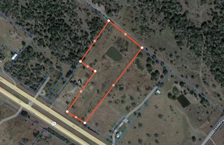 8 prime acres of land with Hwy 71 frontage (+/- 220 linear feet) and a pond. Perfect for commercial or single family farm and ranch use. Some trees and open pasture land. There is a pipeline that runs down side and back of parcel. Nice location between Columbus and Ellinger, TX. Call to schedule an appointment to view. Adjoining 2 acres and home avaiable for $320,000 extra.