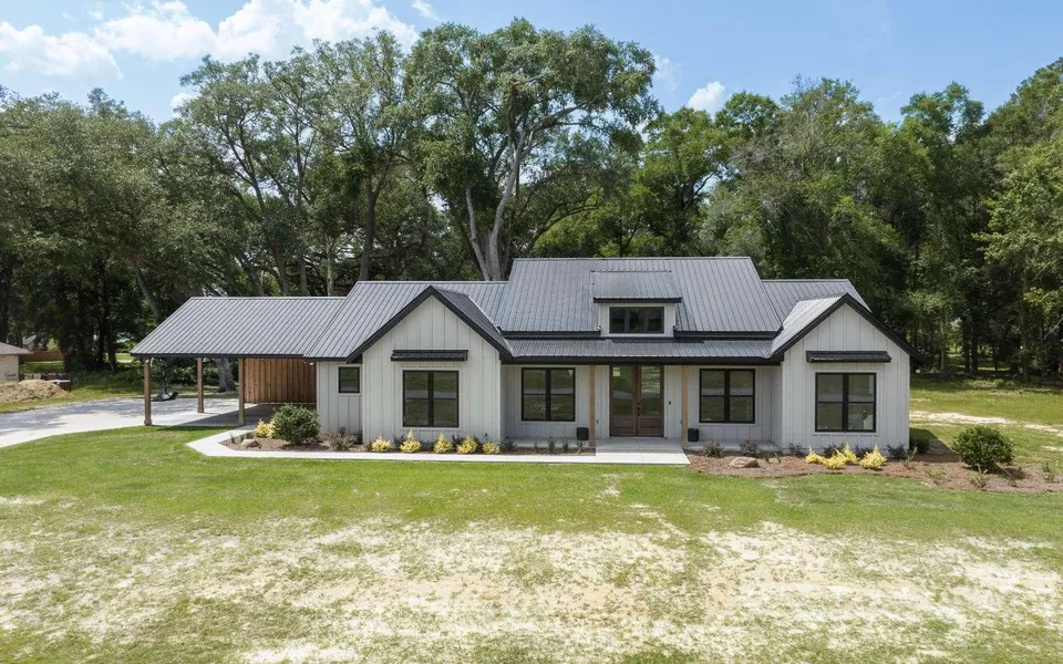 Custom, contemporary Craftsman style home infused with upgrades like no other. Home offers real brick flooring in the kitchen & laundry areas, hand laid virgin pine flooring in living area and master bedroom. A chef's kitchen with commercial style 6 burner gas stove with griddle, all Matte black GE Cafe' appliances including a double oven/air fryer and custom cabinetry. Living room has vaulted ceilings with a center exposed beam, stone gas fireplace, built-ins, and sliders to covered porch. Tongue & groove ceilings on carport, and covered porches. The black Anderson windows make a statement on the outside as well. Must see! See attached for more features.