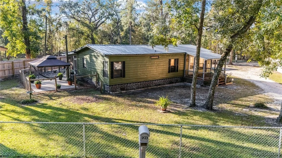 EMBRACE NATURE NEAR THE SANTA FE RIVER! Live in this updated mobile home with a 18X20 screen porch where you can view the deer that visit your backyard. Located in Wilson Springs Community on a fenced .97 acre lot just around the corner (approximately .27mi) from the private boat ramp on the Santa Fe river and the Santa Fe Private Parks for your access as a member for $75 per year. (Less than 300 yards from a paved road) Step inside from the front porch to the open floor plan with large windows for plenty of natural light. The dining area is open to the kitchen which has wood cabinetry and granite counters. LVP flooring flows throughout this home. The home was freshly painted inside and out (2024), metal roof (2018), new double carport (October 2024), 2 wells on property and there is a Puronics water system in the shed close to the house. The 16 X 12 shed can hold your tools, kayaks and more and has an overhead door. There is also an additional power pole on the property which could accommodate an RV. You must see this home to appreciate it!