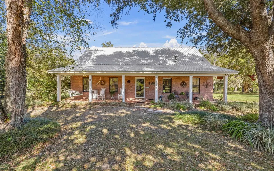 Experience peaceful country living on this gorgeous 17-acre parcel located in the highly sought-after south end of Columbia County. Perfectly set up for animals or livestock, the property is fenced and cross-fenced with a beautiful blend of open pasture and shaded woods, offering both functionality and natural charm. The brick home is warm and inviting, featuring a spacious living and dining area anchored by a wood-burning fireplace, perfect for cozy evenings. The large kitchen boasts stainless steel appliances, ample counter space, and an eat-in breakfast nook. The owner’s suite, located on the main floor, offers a walk-in tiled shower, soaking tub, dual vanities, and separate closets. A second bedroom and full bath are also conveniently located downstairs. Upstairs, you’ll find two oversized bedrooms connected by a shared hall bath, ideal for family or guests. The spacious utility room adds incredible functionality, offering a large pantry, toilet room, and plumbing for a sink. Enjoy the Florida Room off the back of the home, perfect for taking in the expansive views and tranquil beauty of the land. Outside, the property features a pole barn, a metal carport with RV electric hookup, and a wooden barn with a concrete floor, storage space, and stalls. Major updates include a 1-year-old metal roof and HVAC 2023.