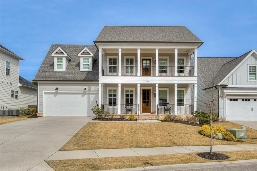 Double porches scream southern charm in this custom built home in the most desirable and sought out community River Island. This 5 bedroom with a loft and 3.5 baths. Features a flex room that could serve as an office or a formal dining room. The kitchen is sprawling with a huge island to serve many guest. Pretty white cabinets with subway tile backsplash and a custom wood hood. Walk in pantry with a mud hall off the garage with custom built ins for dropping off book bags and purses. The owners bedroom is 16x21 and is on the main level with fabulous ensuite with soaking tub and large tile shower with dual vanities, the owners closet is celebrity style with tons of storage, adjoining the laundry room for quick and easy access. The secondary bedrooms are on the upper level with large spaces and a loft area that leads out to the second floor porches. There is a well planned custom dog kennel...