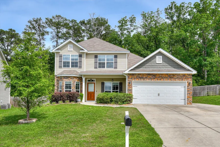 Welcome to this beautiful 2 story, 4br/2.5ba, Stone & Hardy board home. Featuring covered front & back porches, formal dining & living room, office w/ double glass french doors, gorgeous wood trim archway into great room w/ electric stone fireplace. Hardwoods in main living area. Kitchen w/ island, granite countertops, stainless appliances, pantry & recessed lighting. Refrigerator remains. 2inch faux wood blinds & very nice moldings. Master bedroom is down! lots of windows for natural light & plenty of closets for storage. Master bath w/ double vanities, garden tub & separate shower. Laundry is located near the garage. Side stairs lead to upstairs 2nd living area/ playroom 14x17. Three more nice bedrooms upstairs. Huge walk out attic space. This home has a great open concept & great living space! Green space in the back w/fenced backyard, covered back porch with additional concrete slab for the kids play time or your grill. Double car garage w/ extra parking pad. Automatic sprinklers are on a timer. Fresh paint throughout the house, New Roof-05/2024, New Fridge, Dishwasher & 6,000 dollar Water Softener(2021), New HVAC-2022, New Microwave-2023. Minutes to Ft. Eisenhower & Major highways! This house is ready for its new owners to call it HOME!