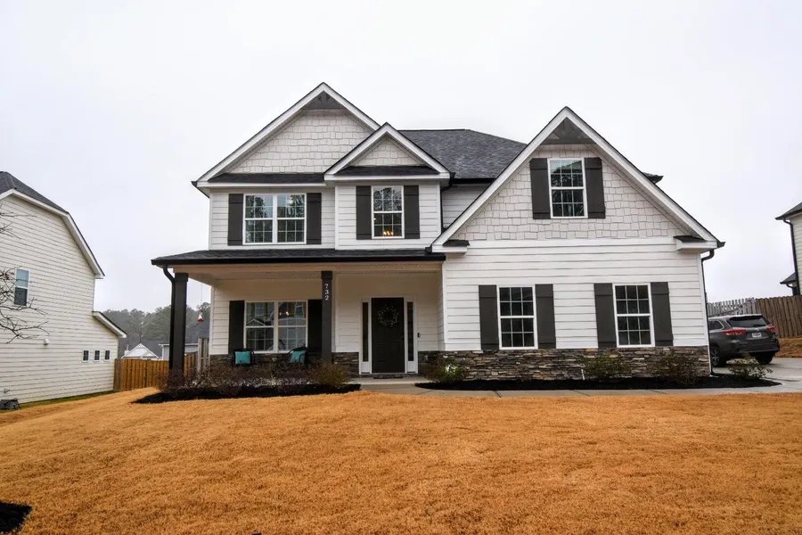 Discover your dream home at 732 Crestwood Drive nestled in the beautiful Four Oaks community of Evans GA . This stunning property features Intelligent Home Technology, Energy-Efficient Design, and a Trendy Open Concept perfect for effortless entertaining. Step into a welcoming two-story foyer leading to a spacious great room with a cozy wood-burning fireplace. The modern kitchen boasts stainless steel appliances, a large island with breakfast bar, a sunny breakfast area, abundant cabinetry, and a corner walk-in pantry. The formal dining room, adorned with coffered ceilings and wainscoting, adds a touch of elegance to your gatherings. Upstairs, the luxurious Owner's Suite awaits with a French door entry, oversized walk-in closet, double vanities, a tiled shower, and a relaxing garden tub. Additional bedrooms are generously sized for your family or guests. Throughout the home, you'll find thoughtful details like rounded corners, 5-inch engineered hardwood floors on the main level, tiled wet areas, and ceiling fans in every room. Recent upgrades include newly installed gutters, a French drain, extended concrete patio in the rear and a privacy fence, enhancing both functionality and privacy for outdoor living. Outside, enjoy the Signature Game Day Porch complete with a wood-burning fireplace, ceiling fan, and pre-wired TV connections—perfect for entertaining or relaxing all year round. With a two-car side-entry garage and premium finishes throughout, this home offers style, comfort, and convenience. Four Oaks community features pool, and sidewalks and located conveniently to shopping, dining and Ft Eisenhower . Don't miss your opportunity to own this exceptional home in Evans' premier new community! Pre-inspected for your convenience and piece of mind. Schedule your showing today.