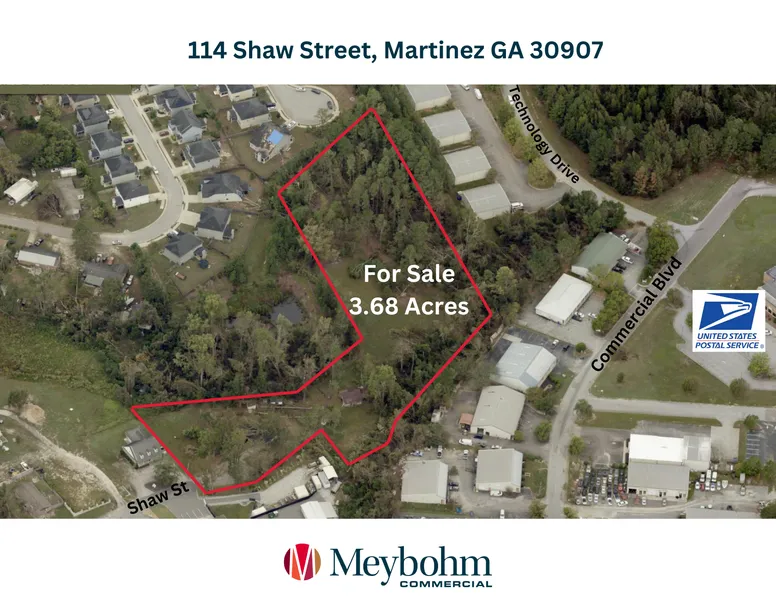 This is a unique property nestled in a convenient Martinez location with a small brick three bedroom, two bath residence and a large lot consisting of 3.68 acres. The house (built in 1958) and some of the detached buildings on the property were damaged during the recent Hurricane Helene. The family who owns the property are selling it as is giving a new buyer the chance to renovate or add-on to the house if desired. It is currently not livable and will require renovations. It was livable prior to the storm. Even with the unconventional shape of the lot, it is rare to have a property this size in Martinez. A new buyer wanting to use the property for more than a residence could seek to get it rezoned to S-1 provided the use is not too intense. To the northeast of the property is a single-family subdivision called Carrington and to the southwest is a commercial development including ...