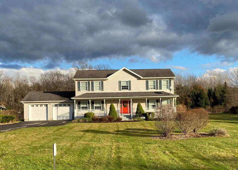 A bright and airy modern colonial with lots of extras. This home sits on a level 2.4 acre lot with seasonal Catskills views from the second story windows. The open kitchen leads to a screened in back porch overlooking a meditation garden with gazebo. The formal dining room features a cozy gas fireplace. There's plenty of room to relax in the living room or the adjoining den. The new, energy efficient Trane furnace will keep you toasty this winter while the central air keeps it cool all summer. The Generac generator keeps everything up and running despite the weather. The large two car garage and full basement provide lots of additional space for all your stuff. This house is conveniently located near Red Hook, Tivoli and Hudson.