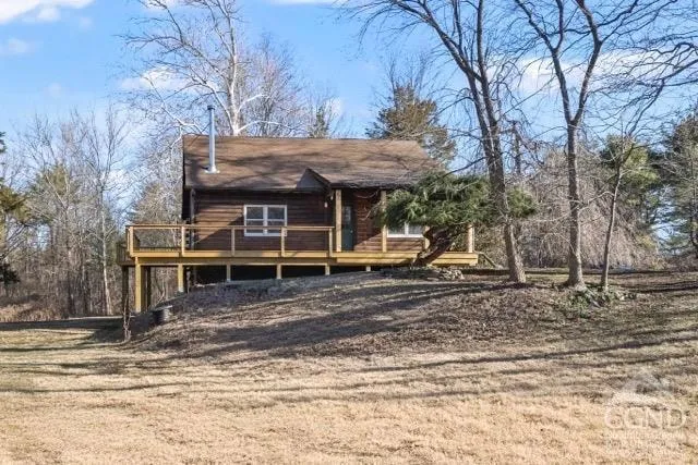 Refined rustic cabin with 30 acres close to town. Set back on 30 scenic acres with ponds, open fields and serene woodlands, this classically crafted 2-bedroom 2-bath log home offers a perfect blend of warm cabin charm, privacy and tranquility. Surrounded by towering pines and a series of ponds, the property offers a perfect retreat into nature. The spacious open floor plan features soaring ceilings with exposed timber beams. The combined modernized kitchen and living area serve as the heart of the home, made cozy with a wood stove and views to the back woods and ponds. The kitchen is updated and designed for both function and style, with modern appliances and a large island perfect for gathering. Step outside from the living room to the wrap around deck a perfect spot to take in the expansive property. A true homesteader's dream, with 30 acres there is ample room to bring your country vision to life. The land is a blank canvas that will inspire. Hike your own trails and take in the natural heritage and beauty of the area. Located in a tranquil setting yet close to town, this 30-acre gem is a rare opportunity for privacy, beauty, and peaceful country living.