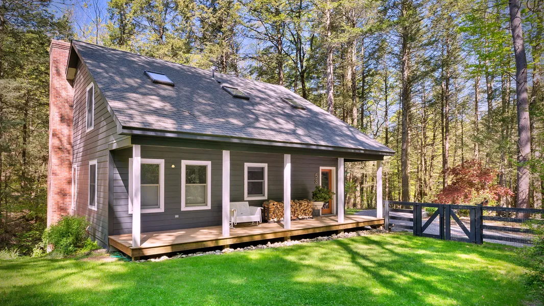 Only a few minutes outside of charming, vibrant Chatham, NY a magical stream side hideaway awaits. This clean, crisp, lofty contemporary home is all buttoned up and ready to move right in. Upon entering, the wonderful expanse of space created by cathedral ceilings and many windows and skylights will delight, while the generous ''mudroom'' entrance provides plenty of storage. The first floor primary bedroom with full bath, a cozy fireplace, and the expansive kitchen add to the comfort of the home. But the real gem is the screen porch just off the living space overlooking the forest and stream. The second floor provides an additional bedroom and full bath along with the gracious loft space for a variety of uses. The lower level is beautifully finished with polished concrete floors and sliders out to a patio and the stream that just keeps giving. A few additional features include a fire pit nestled into a pine grove, a welcoming and manicured approach, a fenced in yard for furry friends, a sweet storage shed, a waterfall and a bridge across the stream to explore the magnificent natural setting. The property is situated on a small dirt road that's great for long walks with your dog. This winding creek side road is a local secret enjoyed by walkers, runners and cyclists. Conveniently close to the Taconic Parkway. 9 minutes from the charming town of Chatham. 26 minutes from Hudson. 30 minutes from Great Barrington. 26 minutes from Catamount. Fun and seasonal activities are close by like hiking, skiing, local farms, wineries, festivals, orchard picking, Fall corn mazes, and my favorite Art Omi.